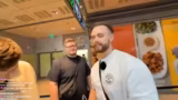 03:45:51Bevor sie ihre Bestellung aufgeben, stehen die Streamer in einer Schlange. Der Streamer nutzt die Wartezeit, um mit dem Chat zu interagieren und die Viewer nach ihrer Meinung über die Länge der Schlange und die Stream-Qualität zu fragen. Es wird über den Hype um Holle Döner gesprochen und die Streamer werden von anderen Personen im Restaurant erkannt, was die Atmosphäre belebt.