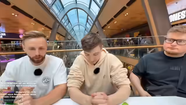 05:10:48Auf dem Weg zum Burgerladen machen sie kurz bei Snipes Halt, um Pullis zu shoppen. Es wird über Influencer-Rabatte und die Qualität der Kleidung gesprochen. Der Streamer äußert Bedenken wegen der Technik, da das Kabelmanagement schlecht wirkt und der Stream nicht wie Pokémon Go aussehen soll. Zudem wird die Empfangsstärke des Handys diskutiert.