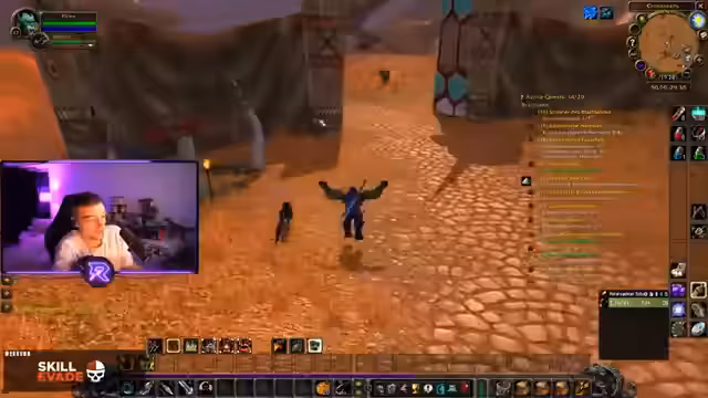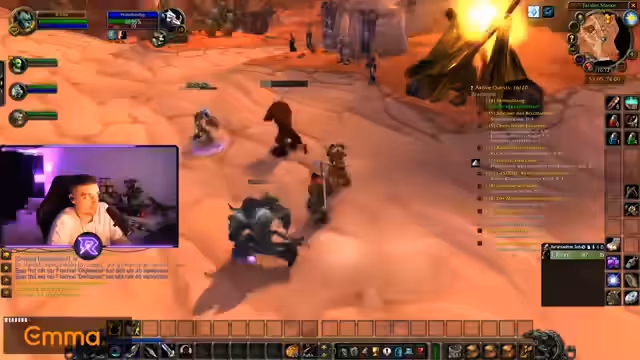 05:45:02In der Welt von World of Warcraft ist das Hauptziel des Streamers das Finden von Gegenständen für seine Quests, insbesondere Streunerklauen und Raptorenhörner. Er erkundet das Gebiet des Brachlands und unterhält sich mit dem Chat über verschiedene Spielaspekte, wie z.B. die Wertentwicklung von Auktionshaus-Gegenständen. Er leidet unter der unübersichtlichen Verteilung der Questziele, was die Orientierung erschwert und die Farm-Tour ineffizient macht.
