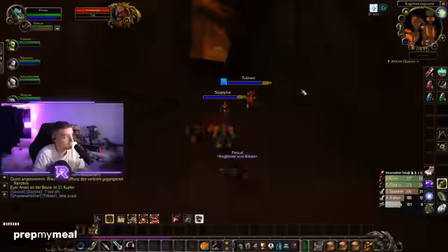 02:53:17Der Dungeon-Kampf beginnt und gestaltet sich als einfacher Start. Der Streamer fällt aus einer großen Höhe und überlebt knapp. Er erkundet die eigene Aktionsleiste und entscheidet sich für bestimmte Fähigkeiten wie Zurechtstutzen (Slow-Effekt). Die Gruppe muss darauf achten, der Pets zu entledigen, um eine sichere Bewegung durch eine mit Lava gefüllte Zone zu ermöglichen. Der Streamer ist sich seiner Rolle als Damage-Dealer bewusst und gibt Anweisungen zur optimalen Verteilung der Angriffe auf Gegner, um den Schaden zu maximieren.