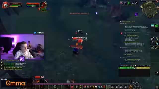 02:32:52Es wird die Notwendigkeit angesprochen, die Aktionsleisten nach jedem Tod mit dem Addon "Bartender" neu konfigurieren zu müssen. Die Meinungen über bestimmte Content-Creator, wie den "Meinungsblocker", werden ausgetauscht, wobei die Nützlichkeit für Reaction-Content, aber auch die mangelnde persönliche Relevanz betont wird. Es kommt zu einer Diskussion über die Quest-Anzeige und die Schwierigkeit, bestimmte Quests zu finden oder anzunehmen, insbesondere die mit den "Kakteen". Ein Spieler teilt seine Vorliebe für das Spielen von "Retail" WoW und die dortigen Raids, in denen man tanzen muss, um nicht zu sterben. Es werden Probleme mit der Quest-Anzeige im aktuellen Spielstand festgestellt, was auf einen möglichen Bug oder eine Fehlkonfiguration hindeutet. Die Vorliebe für den Rapper "Reezy" wird geäußert, wobei ein Spieler zugibt, sich noch nie getraut zu haben, ihn um ein Bild zu bitten.