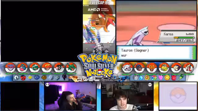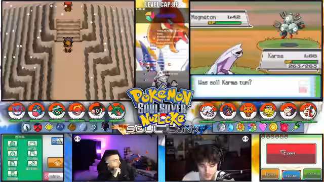 02:09:51Kroko kehrt nach langer Abwesenheit zurück, die auf ein Stundelanges Tinder-Date oder einen Schlafrückstand zurückgeführt wird. Es folgt eine Diskussion über die fehlende Pokémon-Liste, die für die Fortsetzung des Spiels dringend benötigt wird. Teilnehmer fordern, dass Erich oder Mert die Liste bereitstellen sollen. Ohne diese können keine legitimen Encounters stattfinden, weshalb die Streamer überlegen, das Spiel zu pausieren. Stattdessen wechseln sie zu nicht-soullink-bezogenen Aktivitäten wie Angeln oder Diskussionen über alte Runs.