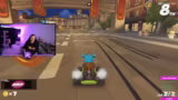 11:52:04Nach der Frustphase in dem vorherigen Spiel wechselt der Streamer zu einem Rennspiel, das er mit Mario Kart vergleicht. Er ist anfangs unsicher bei der Steuerung und den Mechaniken, sammelt aber schnell Items und nutzt sie strategisch. Der Streamer beginnt, Spaß an dem neuen Spiel zu finden, und versucht, durch geschicktes Fahren und Item-Nutzung die Rennen zu gewinnen.