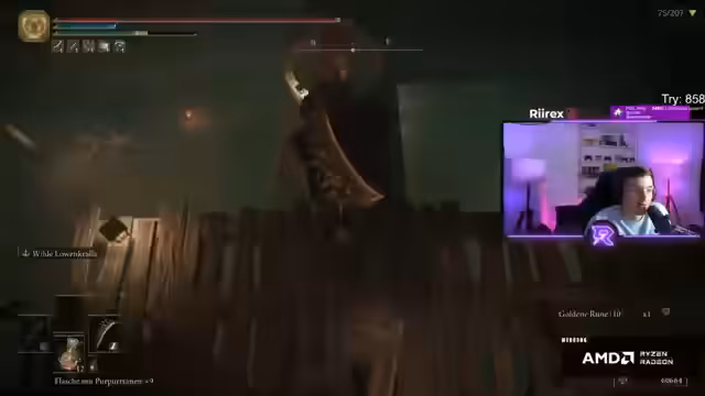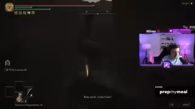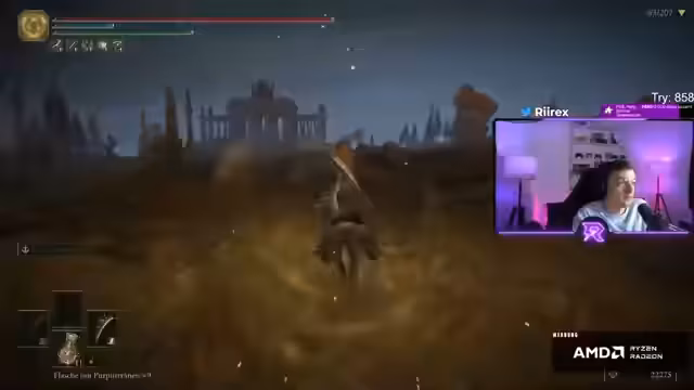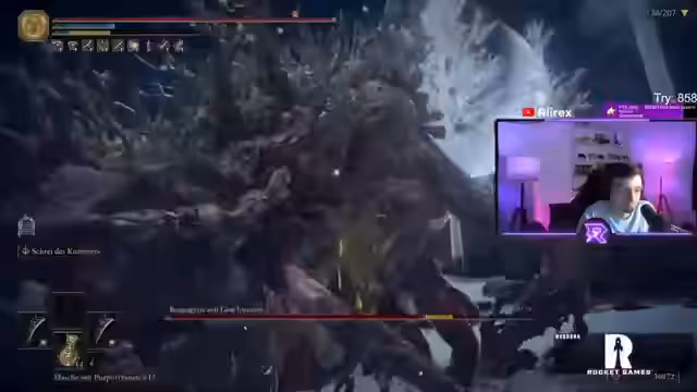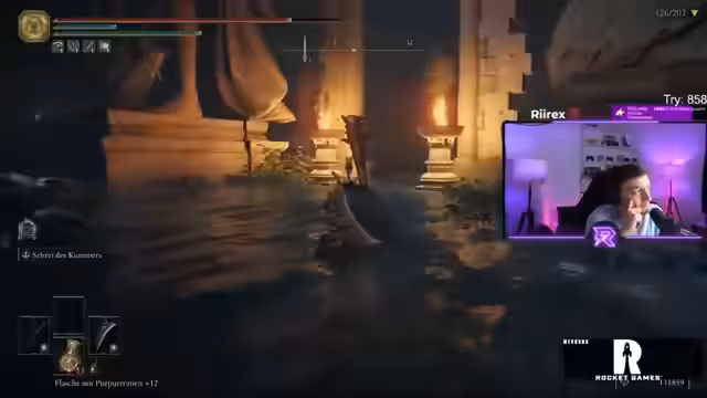 10:59:53Nachdem Malenia besiegt wurde, erlebt der Streamer einen extrem unglücklichen Tod gegen Renata, die einen einzigen Angriff (One-Hit) ausführt, der ihn sofort tötet. Er ist frustriert, da dieser Tod nichts mit seinem Spielstil zu tun hatte und er daraus nichts lernen kann. Im Chat kritisiert er Zuschauer, die sich über seinen Tod freuen, und betont, dass er trotz der langen Streaming-Zeit von elf Stunden weitermachen wird, um die Challenge fortzusetzen.