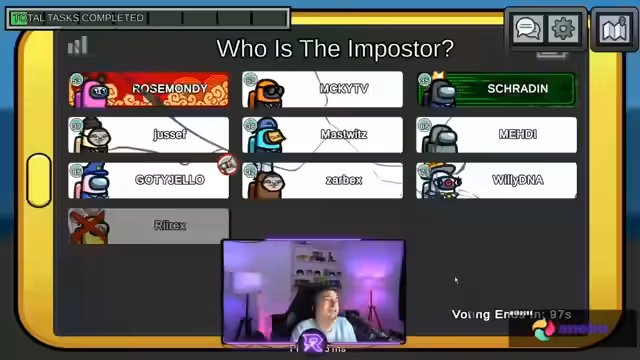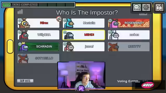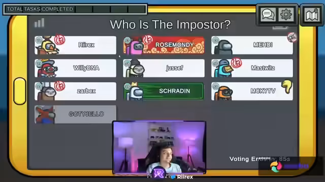 12:45:54Ein weiterer Kill ereignet sich im Reaktor, was die Lage verschärft. Rose wird unschuldig befunden, da sie Reparaturen durchführte. Eli und Micky werden als hoch verdächtig eingestuft, da Micky nach einer Fix-Runde versuchte, den Streamer zu töten. Die Verwirrung steigt, da sich die Positionen der Spieler ständig ändern und Alibis schwer zu verifizieren sind. Die Gerüchteküche brodelt über die Identität des Imposters.