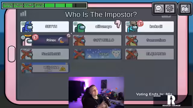 07:34:47Nach langen Analysen und Diskussionen kommt der Streamer zu einer Erkenntnis. Er identifiziert Zane als Imposter, was dazu führt, dass dieser ausgeschieden wird. Der Streamer ist sehr stolz auf diese Erkenntnis und beschreibt es als einen perfekten 'Darkrai'-Move. Er lobt seine Mitspieler für die gute Zusammenarbeit und betont, wie wichtig es ist, die Bewegungen der anderen genau zu verfolgen. Er schafft es, den letzten Imposter auszusortieren und rühmt sich des Sieges.