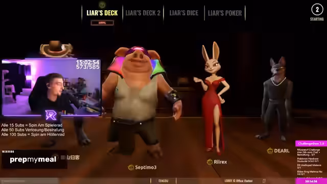 06:35:59Als Alternative zu Geogaster startet der Streamer eine Partie Monopoly gegen die Community, was er als 'mit Herz' beschreibt. Gleichzeitig erfolgen weitere Runden von Liar's Dice und Party Animals. Der Streamer kündigt an, später noch Spiele wie Sifu, Bloodhunt und einen Höllenspin für 600 Subs zu spielen. Die Stimmung ist geprägt von interaktiven Elementen und geplanten Aktivitäten für den Rest des Streams.