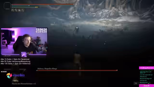 09:17:24Es wird eine Reflexion über die kurze Lebensdauer von Spielen in der heutigen Gaming-Kultur angestellt. Der Streamer stellt fest, dass Hypes um Spiele wie 'Rematch' schnell wieder vergehen und keine langanhaltende Beziehung aufbauen. Daraufhin wird eine spezifische Challenge mit dem Spiel 'Marlenia' aus 'Elden Ring' ins Auge gefasst. Es geht dabei um einen No-Hit-Durchgang, wobei die Herausforderungen, wie das unterschiedliche Verhalten des Bosses im ersten Durchgang, diskutiert und die Fairness des Gameplays hinterfragt wird.
