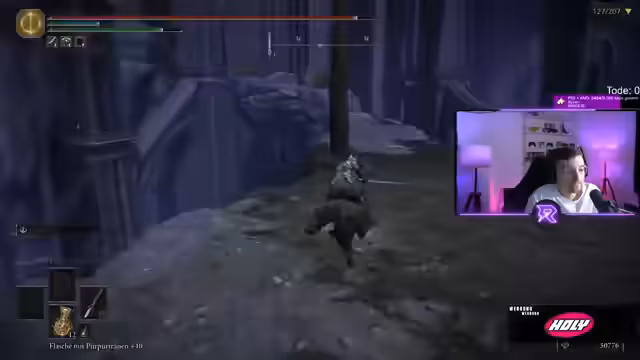 00:25:29Der Streamer besiegt einen Gegner und erhält die Magmaklinge. Er fragt sich, wo man Fünfer- und Sechsersteine kaufen kann, da er diese benötigt, um seine Waffe aufzuwerten. Er überlegt, sich den Krummfinger-Gnadentalisman zu holen, um mehr Runen zu erhalten. Es folgt ein Kampf gegen einen Gegner, bei dem der Streamer fast stirbt, weil er vergessen hat, wie hoch der Schaden in dem Raum ist. Er überlegt, seine Waffe auf Blitz umzurüsten und fragt den Chat, wo man den Blitzschimmerstein findet. Es wird über Elden Ring diskutiert, insbesondere über die Schwierigkeit und die Herangehensweise an das Spiel. Der Streamer erzählt von einem Freund, Floyd, der das Spiel zum ersten Mal gespielt und nach 350 Toden bei Margit aufgegeben hat. Er betont, dass man dem Spiel eine Chance geben muss und dass es ein Unterschied ist, ob man das Spiel hasst oder einfach nicht offen dafür ist. Er vergleicht Elden Ring mit anderen Spielen und Serien, die erst im Laufe der Zeit besser werden.