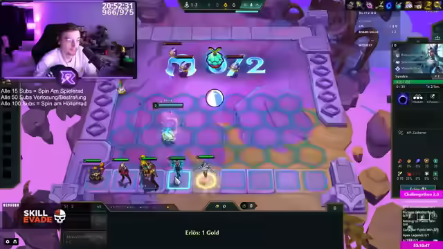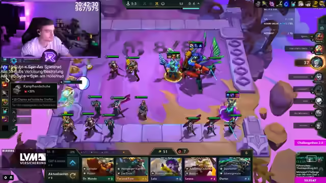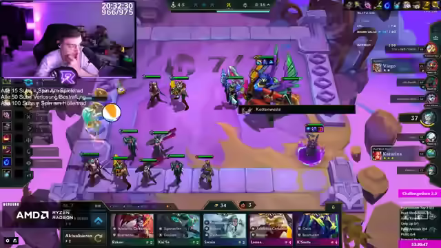 06:08:21Ich äußere mich zu Kai'Sand und sage, dass ich den Hype darum nicht nachvollziehen kann und es eher etwas für die jüngere Generation sei. Einige Streams von ihm finde ich unterhaltsam, andere nicht. NetWorth ist absolute Kinderverarsche. Unterhaltung ist subjektiv, aber seine Streams sind meist sehr laut. Ich mochte Eishow Speed früher gar nicht, finde ihn aber mittlerweile sehr gut, da er nicht mehr so aufgedreht ist. Seine frühere aufgedrehte Art fand ich nicht witzig. Ich liebe Pandoras Item als Fähigkeit und finde es nice, dass man jede Runde neue Items bekommt und nicht von Items abhängig ist. Ich spiele eine Runde TFT und platziere meine Einheiten. Ich überlege, welche Items ich wem geben soll. Ich gewinne das Spiel und erhalte 311 LP. Ich habe drei Spiele offen und könnte Platin erreichen, wenn ich dreimal Erster werde. Jetzt brauche ich zwei Warson-Siege.