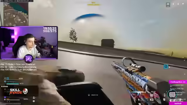 08:00:06Es wird reflektiert, wie eine Spielsituation in Warzone verschlechtert wurde, und die Möglichkeit hervorgehoben, Spielszenen durch Zurückspulen erneut anzusehen (nur für Sub oder Turbo). Die Frustration über das eigene Versagen wird deutlich, und die Notwendigkeit, mehr Ranked-Spiele zu spielen, um das Ziel (Crimson-Rang) zu erreichen, wird betont. Es wird der Verdacht geäußert, dass ein Gegner gehackt hat, was die Schwierigkeiten im Spiel zusätzlich verstärkt. Die Frage, ob im Ranked-Modus Wurfmesser verwendet werden, wird aufgeworfen, und es wird über mögliche Übersetzungsfehler und deren Auswirkungen auf das Spielverständnis diskutiert. Die Frage, wie weit Ante 5 im Spiel ist, wird gestellt, um das Ausmaß des Scheiterns zu bewerten. Es wird über die Windchallenge und die Diskrepanz zwischen den Zielen und dem tatsächlichen Fortschritt im Spiel gesprochen. Die Entwicklung des 'Scamathon' zu einem 'Mazzelfickton' wird humorvoll thematisiert, wobei der eigene Anteil an dieser Entwicklung reflektiert wird. Es wird die Schwierigkeit des Spiels Balatro thematisiert. Es wird die Frage aufgeworfen, warum es ein Emote gibt, das eine obszöne Darstellung des Gesichts zeigt, was für Irritationen sorgt.