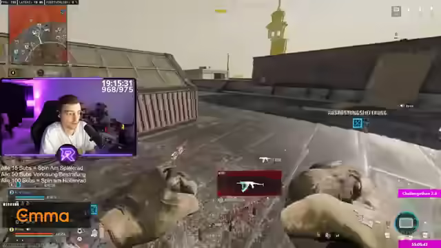 09:49:37Ein Gegner wird im Haus entdeckt und ausgeschaltet. Die Spieler diskutieren über die Position des Gegners und die verfügbaren Waffen. Einer der Spieler wird von einem Scharfschützen über der Straße beschossen und sucht Deckung. Die Spieler looten die gefallenen Gegner und diskutieren über die verfügbare Ausrüstung. Ein Spieler mit einem auffälligen Titel wird im Killfeed entdeckt. Die Spieler diskutieren über die Vor- und Nachteile verschiedener Waffen und Visiere. Ein Spieler findet keinen AR und äußert seinen Frust. Die Spieler sprechen über die COD-Bubble und ihre teilweise verschrobene Denkweise. Ein Geheimraum wird entdeckt, und die Spieler beschließen, ihn aufzusuchen. Ein Gegner auf dem Dach wird entdeckt und beschossen. Ein Spieler wird beim Versuch, ein Auto zu stehlen, getötet. Die Spieler diskutieren über die Position des Gegners und die Möglichkeit einer Wiederbelebung. Es wird erwähnt, dass Annika bis morgen streamt und dann geht. Es wird ein CPU-Giveaway und andere Giveaways angekündigt. Einer der Spieler plant, morgen eine Uhrzeit auf Instagram zu posten, um das Giveaway zu veranstalten, damit möglichst viele Leute teilnehmen können. Er erzählt, dass er wegen des Zombie-Modus mit COD angefangen hat und dass Black Ops 3 der beste Zombie-Modus war. Das Gewinnspiel soll morgen um 18 oder 19 Uhr stattfinden.