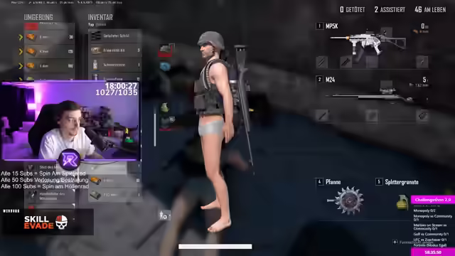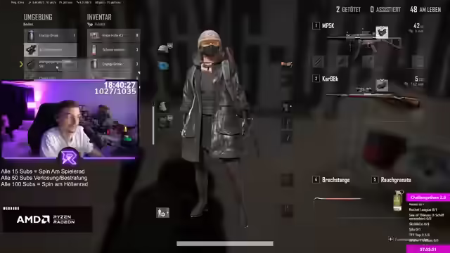 10:50:19Es wird über unerwartete Sub-Geschenke gesprochen, die durch ein spezielles Event erhalten wurden, bei dem zufällig zwischen 21 und 100 Subs verlost werden. Ein Zuschauer erhielt sogar 100 Subs als Bonus, was als extrem selten und glücklich beschrieben wird. Es wird eine Spielsituation in PUBG analysiert, in der die Landeposition und die unmittelbare Sicherung eines Hauses im Vordergrund stehen. Taktische Entscheidungen wie das Absetzen auf einem Dach und das anschließende Vorgehen gegen Gegner werden besprochen. Es wird die Bedeutung von Teamwork und schneller Reaktion hervorgehoben, insbesondere in Bezug auf das Niederschlagen von Gegnern und das anschließende Looten für Munition und Ausrüstung. Die Schwierigkeit, in bestimmten Situationen Waffen zu erreichen und sich aus ungünstigen Positionen zu befreien, wird ebenfalls thematisiert.