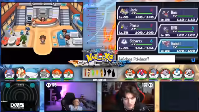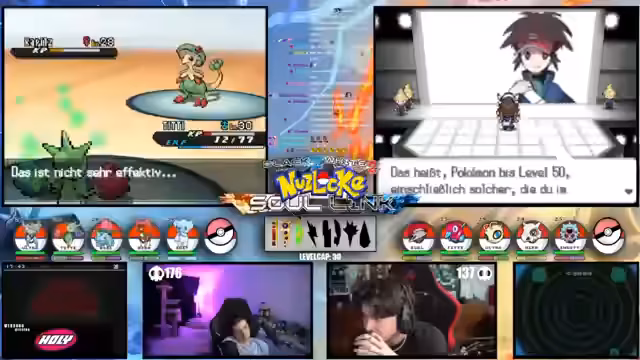 05:48:06Nach einigen Kampfherausforderungen gelingt es dem Streamer, ein Pokémon zu fangen, das jedoch Pech hatte, da es sofort verletzt wird. Er diskutiert mit seinem Mitspieler Matze über die Teamzusammenstellung und zeigt sich unzufrieden mit der aktuellen Situation. Sie planen, wichtige Begegnungen zu finden und das Team weiter zu stärken, indem sie spezielle Attacken und Items wie den Feuerstein einsetzen.