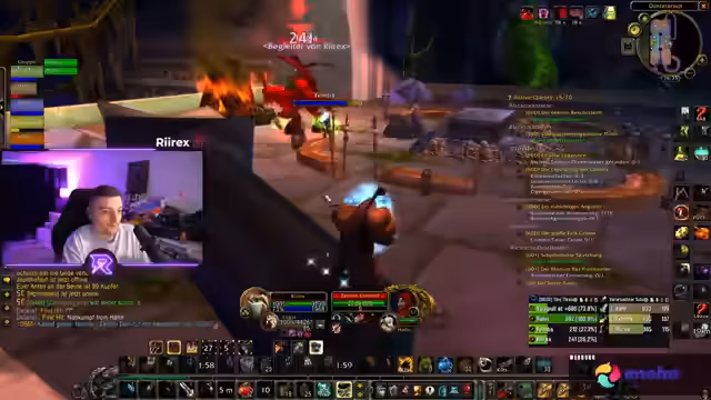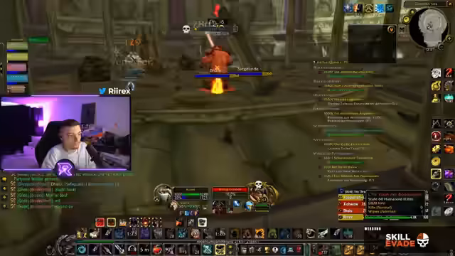 07:21:50Ein kritischer Kampf gegen den Boss 'Feuerfest' in DM East beginnt, der schnell zu einer dramatischen Situation eskaliert. Die Gruppe erleidet hohe Verluste und der Streamer muss mehrmals eingreifen, um die Situation zu retten. Anschließend wird ein Wechsel im Team vorgenommen: Rhyrex macht Pause und ein anderer Spieler springt als Tank ein, um den Rest des Dungeons zu absolvieren.