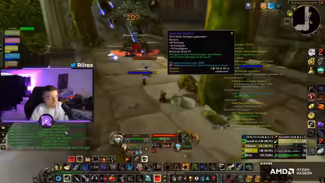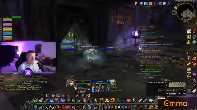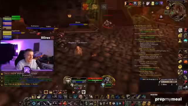 01:49:02Die Gruppe verlässt den Dungeon, nachdem ein spezifisches Quest-Objekt nicht erhalten wurde. Es wird die Diskussion geführt, ob der Boss erneut angegriffen werden soll, aber es droppt nichts weiter. Der Streamer erwähnt den Drop eines Heiler-Gürtels, den er behält, da er selbst Heiler ist. Anschließend planen sie, sich im Dungeon Deier Maul wieder zu treffen. Für das anstehende Stratol-Dungeon wird betont, dass ein Mage benötigt wird, da ein Ersatz für den ausfallenden Magier gefunden werden muss.