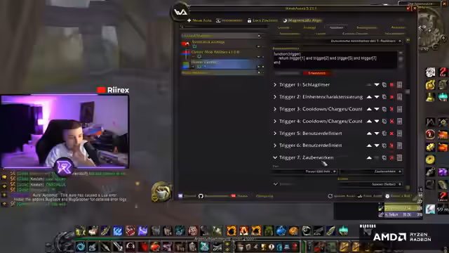 06:49:34Der Streamer stellt den Spielern den Umgang mit Weak-Auras vor, da es zu Anzeigeproblemen mit der englischen Version kommt. Es wird diskutiert, wie die Weak-Auras auf dem deutschen Client korrekt funktionieren können. Die Zusammenarbeit mit dem Chat, insbesondere mit Han, ist entscheidend, um eine funktionsfähige Version für den Hunter zu erhalten. Dieser Teil des Streams konzentriert sich stark auf die Verbesserung der Spielerführung und der visuellen Unterstützung im Spiel.