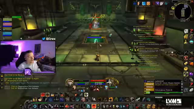 01:04:21Der Streamer und seine Gruppe begeben sich in den Dungeon Dunkelruhne und konzentrieren sich auf den Bossfight. Es wird eine Strategie entwickelt, bei der Ryrax den Boss mit einem Pet aggro drawt, während der Streamer sich auf das Beseitigen der Ads konzentriert. Die Aura des Bosses soll dabei nicht mit den Ads kombiniert werden. Die Gruppe bewegt sich durch den Dungeon, findet eine schwarze Lotus in der Arena, und der Streamer diskutiert kurz das Thema Schloolandschaft und strategische Entscheidungen für den weiteren Verlauf.