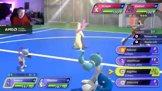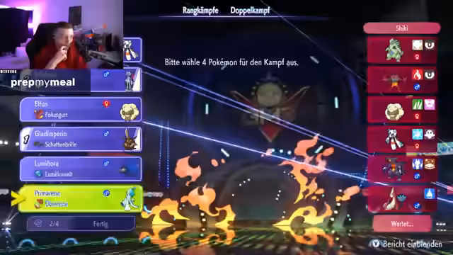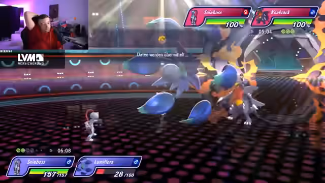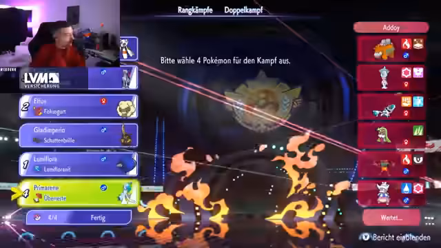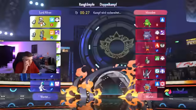 00:08:04Der Stream startet mit technischen Problemen, da es zunächst keinen Sound gibt. Der Streamer muss das Spiel neu starten, um den Sound wiederherzustellen. Nach der Behebung der Probleme beginnt der erste Champions-Rangkampf. Das Team besteht aus Glurak, Waschoturm, Enigma, Schlappohr, Floette und Lumiflora. Der Streamer startet mit Lumiflora und möchte ein Glücksspiel einsetzen, hat aber zunächst kein Glück und fängt nur normale Pokémon. Der erste Kampf beginnt mit dem Gegner, der mit Schlappohr, Enigma und Elfuch startet. Der Streamer wählt Lumiflora als erstes Pokémon ein, das den gegnerischen Schlappohr bekämpft, jedoch nicht tötet. Der Gegner setzt dann einen Mega-Einlass ein, was den Streamer überrascht. Der Streamer erkennt, dass sein Team gegen Stahl-Pokémon Probleme hat und ein Schlüsselpokémon wie Knackschluber oder Schnecknock benötigt, um effektiver zu sein.
