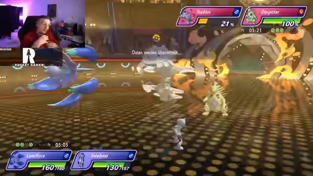 05:05:15Der Streamer konfrontiert ein starkes Wasser-Team mit Full Shiny-M Pokémon, insbesondere Fiaro, das als besonders herausfordernd beschrieben wird. Er passt seine Strategie an, indem er Pokémon wie Glurak einsetzt, um den Regen des Gegners zu überwinden. Der Streamer zeigt Respekt vor der Stärke von Fiaro und diskutiert verschiedene Taktiken, um gegen solche Teams anzukommen.