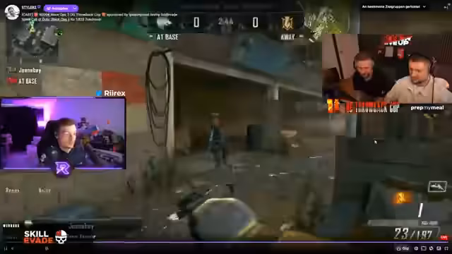 00:12:58Der Streamer äußert die Überlegung, bei gutem Verlauf des aktuellen Turniers, zukünftig auch einen Black Ops 3 (BO3) Cup oder weitere BO2 Cups zu veranstalten. Er betont die Schwierigkeit, ein Turnier mit 40 Creatorn in einem 13 Jahre alten Spiel zu organisieren und die Teams fair zu balancieren, da die Spielstärke der einzelnen Teilnehmer schwer einzuschätzen ist. Währenddessen läuft das erste Spiel des Turniers, in dem Team Reapers gegen Team Kayser antritt und gewinnt. Im Hintergrund werden technische Einstellungen und Klassenanpassungen für die Spieler besprochen, insbesondere für Eli, der später zum Stream dazustößt. Es gibt Diskussionen über die optimale Klassenzusammenstellung für Hardpoint- und Search & Destroy-Modi, wobei auf spezifische Perks und Aufsätze wie Reflexschaft, Vollmantel, Leichtgewicht, Zähigkeit, Gewandtheit und Totenstille eingegangen wird. Die Wichtigkeit von Trophäensystemen für bestimmte Rollen wird hervorgehoben. Es wird auch ein Sponsor des Turniers, Prep My Meal, vorgestellt, der Essenslieferungen anbietet und aktuell große Rabattaktionen hat. Der Streamer bedankt sich bei den vier Admins von Plutonium, die bei der Organisation und dem Support des Turniers helfen, insbesondere bei einem, der Geburtstag hat.