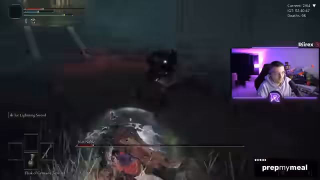 01:46:10Statt eines riskanten Abkürzens beschließt der Streamer, den direkten und 'normalen' Weg zu wählen, da die Gegner auf anderen Wegen noch gefährlicher sind. Auf seiner Suche nach dem Pferd und Margit gerät er in gefährliche Situationen, wird von Gegnern attackiert und verliert wertvolle Runen. Er muss improvisieren und alternative Routen in dem von der Mod handgefertigten Umfeld nutzen, um sein Ziel zu erreichen.