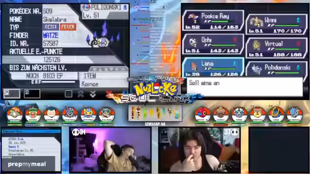 04:45:38Der Streamer beginnt, ein Team für den bevorstehenden Kampf aufzustellen. Er hat große Auswahlprobleme, da viele seiner Pokémon bereits gestorben sind und er nur wenige starke Kämpfer in seiner Box hat. Er holt sich Ratschläge vom Chat, um eine gute Kombination aus Boden-, Pflanze- und Drache-Pokémon zu finden, die seine Abdeckung verbessert. Er entscheidet sich, den Pilz, Klick-Klack und Vibrava mitzunehmen.
