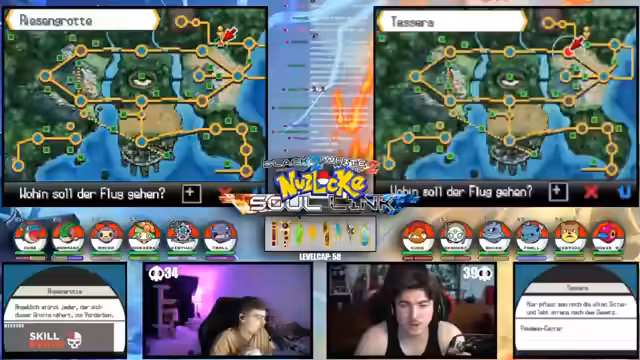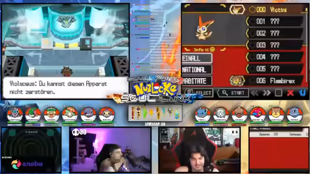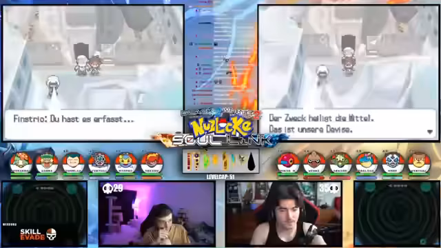 01:51:56Nachdem ein Orden gewonnen wurde, wird die Story fortgesetzt. Der Streamer und sein Gegenüber werden von Team Plasma angegriffen. Es wird die Legende von den getrennten Drachen-Pokémon Sekrum und Rishiram erzählt, die Team Plasma wieder vereinen möchte. Dies führt zu mehreren Kämpfen gegen Plasma-Gruppen. Der Fokus liegt auf der spielerischen Umsetzung des Anime-Plots und den Gefahren, die von Team Plasma ausgehen.