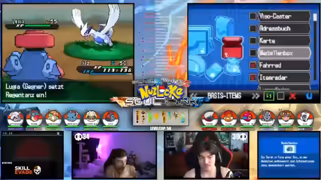 09:52:57Ein interner Spaß zwischen den Streamern Matze und riirex eskaliert spielerisch, als Matze sich über einen gefangenen Hasel gefreut hatte, was riirex humorvoll als 'Verrat' an einem potenziell stärkeren Partner wie Kyogre darstellt. Als kleiner Ausgleich wird eine neue, unkonventionelle Challenge ins Auge gefasst: Alle 50 Runs wird ein 'Shiny-only-Run' mit voller Story-Skip-Option absolviert, um für Abwechslung zu sorgen.
