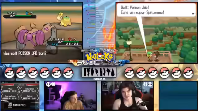 10:10:07Nachdem der Versuch, die Freundschaft zu maximieren, aufgegeben wird, findet der Streamer ein neues Pokémon namens Poppelnase. Es wird gefangen und dessen Name sorgt für eine kleine humorvolle Diskussion im Chat. Der Streamer vermutet, dass dieses Pokémon im weiteren Spielverlauf von Nutzen sein könnte und zeigt sich froh über die Diversität des Teams.