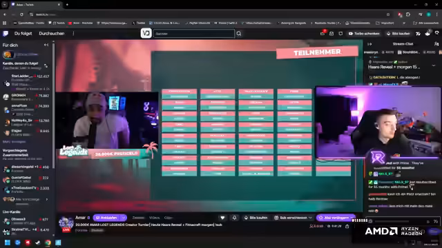 00:09:53Es handelt sich um ein "Lost Legends"-Fortnite-Turnier. Der Streamer ist mit seinem Team Fuchs für die erste Runde gesetzt und listet die anwesenden Teams auf, darunter starke Konkurrenten wie Lucid, Puba Buccher, Dave Knight und Ryback. Besonders hervorgehoben werden die Valorant-Spieler, die durch ihre Zielgenauheit, insbesondere mit der Sniper, eine große Gefahr im No-Build-Format darstellen. Die Turnierregeln umfassen sechs Runden, die Platzierung ist wichtiger als Kills, da Top 15 für Punkte notwendig sind.