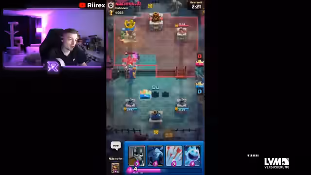 01:21:23Der Streamer analysiert seine Clash-Royale-Spielweise und strategischen Fehler. Er spielt vor allem nach Gefühl und hat ein unkonventionelles Deck, das er selbst zusammengestellt hat. Sein Ziel ist es, 9000 Elo zu erreichen und wertvoller für seinen Clan zu werden. Der Clan ist zwar voll, aber inaktiv werde ausgeschichtet, um Platz für neue Mitglieder zu schaffen, und hat das Ziel in die Top 1000 im internationalen Ranking zu kommen.