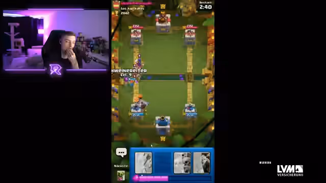 02:20:32Der Streamer feiert seine schnelle Steigerung der Trophäen und gibt zu, dass er momentan auf einem sehr niedrigen Elo-Level spielt, was ihm viele einfache Siege bringt. Er ist stolz auf sein selbst erstelltes Deck und hofft, damit einen Nischenplatz im High-Elo-Bereich zu finden. Trotz seines Erfolgs im Stream motiviert er seine Chat-Community, ihm Tipps für Clash Royale zu geben und teilt persönliche Nachrichten über den gesundheitlichen Zustand einer Community-Mitglied.