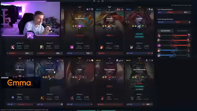 01:27:01Das Streamerleiden setzt sich mit mehreren verlorenen Spielen fort. Er fühlt sich in seinen Spielen machtlos, da er durch ständige Gangs und Fights keine Farm aufholen kann. Seine Emotionen kochen über, er kritisiert sowohl das eigene schlechte Spiel als auch das Verhalten der Mitspieler. Trotzdem versucht er, gute Tipps aus dem Chat aufzunehmen, um zu verbessern, fühlt sich aber frustriert und überfordert.