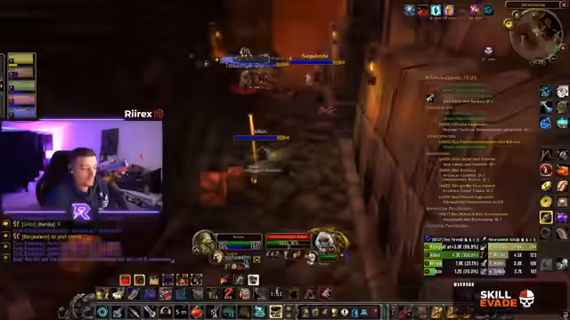 08:43:01Der Streamer erkundet die Blackrock Depths und fällt unter die Map, wo er auf Zorn und Dunkel stößt. Anschließend begegnet er den sieben Zwergen und versucht, ihre Rolle und die Handlung zu verstehen. Währenddessen unterhalten sich die Anwesenden über die fehlende Schadensauswirkung der Angriffe und einen bestimmten Evasionseffekt, der von hinten zu funktionieren scheint. Das Gameplay ist von ständigen Erkundungen und der Aufklärung der düsteren Umgebung geprägt.