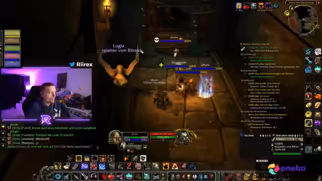 03:50:58Die Streamer planten, zwei Bosse in der Scholomance zu bekämpfen. Der erste Boss, Gendiss Barov, kann Blutsäure dropen, die benötigt wird, um den Gargoyle für den nächsten Boss, Kirithoros, zu beschwören. Wichtig war die Ankündigung, bei dem Illusions-Boss nur den Hauptmobil zu fokussieren und die Illusionen zu ignorieren, um einen Wipe zu vermeiden.