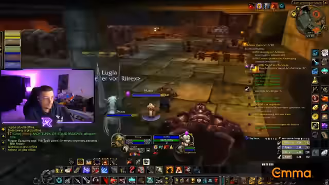 08:56:28Nachdem der Streamer Blackrock Depths durchquert hat, geht es nun zum Molten Core. Eine Screenshot wird vor dem ersten Boss, Moltencore, gemacht. Der Streamer zeigt sich raid-ready und freut sich auf den Loot, insbesondere da Black Diamonds für eine wichtige Chance benötigt werden. Es wird eine Warnung vor dem Endboss Eni ausgesprochen, den man nicht überaggroen darf, da man sonst one-shott werden kann.
