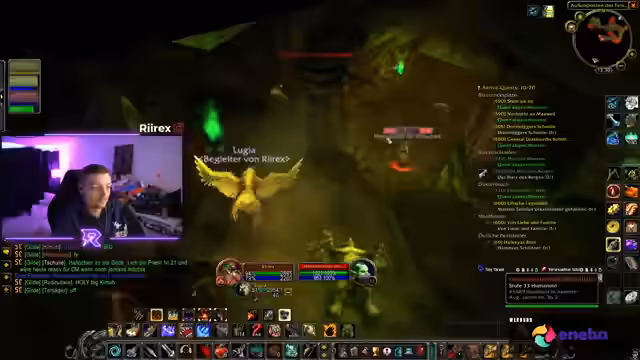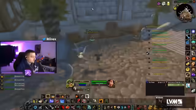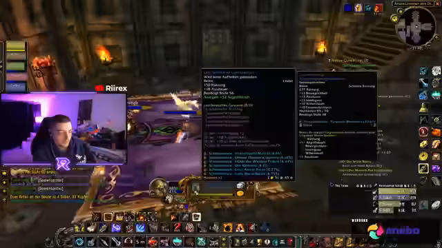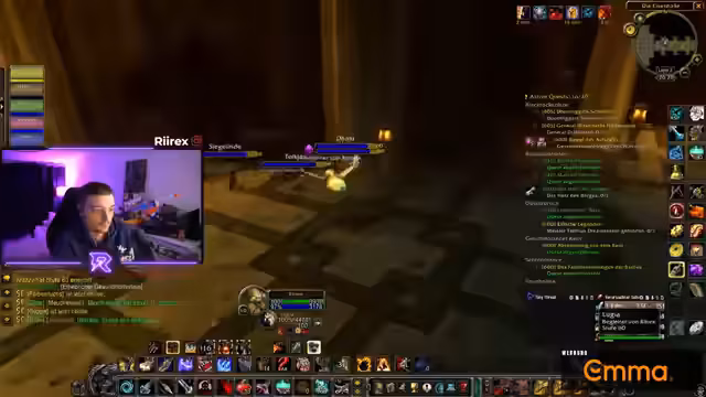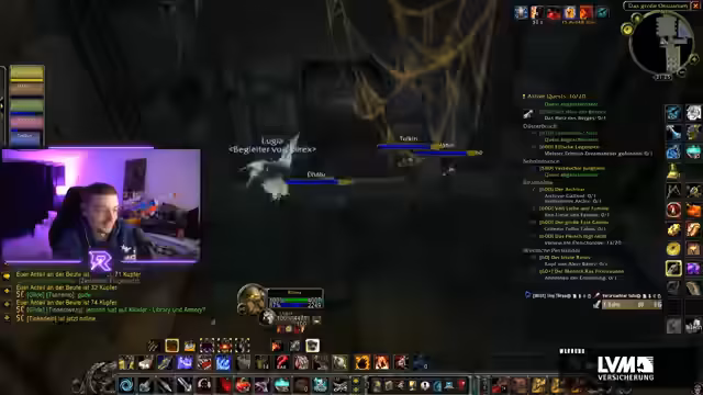 09:09:32Es findet eine Diskussion über die Berufe in der Gilde statt. Ein Priester fragt nach Empfehlungen, ob er bei Stoffverarbeitung oder Verzauberung bleiben soll. Der Streamer empfiehlt, Verzauberung beizubehalten und als zweiten Beruf Inschriften zu wählen, da benötigt werden. Beim Loot wird eine Armschiene getauscht, und der Streamer stellt fest, dass es sich um ein fettes Upgrade handelt. Dalus Loot-Luck wird bedauert, da dieser bisher kaum Items erhalten hat.