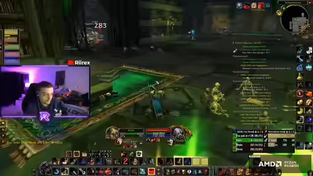 04:26:29Es wurde die Lore der Unterstadt erklärt, die von der Verderbnis durch den Lich King und die anschließende Pest handelte. Beim Dungeon-Verlauf in der Todesgrube betonte der Streamer die Wichtigkeit von Heldenhaftem Stoß und Slow-Fallen, um Mobs zu kontrollieren. Der Kampf gegen den Boss Rivendare wurde als knapp, aber erfolgreich beschrieben, mit einem spektakulären Drop für den Streamer.