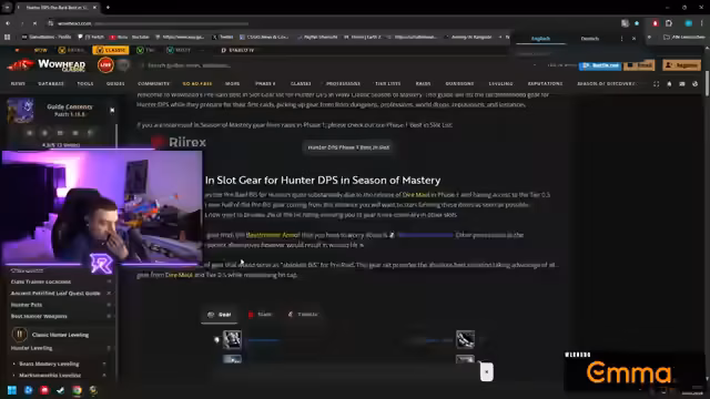 01:35:23Bei der Sichtung des Tier 0,5- und Tier 1-Sets für seinen Jäger zeigt sich der Streamer zunehmend verärgert. Er kritisiert das Design der Sets, insbesondere fehlende Trefferchance, und bezeichnet es als 'kompletten Müll'. Er kommt zu dem Schluss, dass es sich bei dem Set um 'Vanilla BOD' handelt und bemerkt, dass Jäger im Gegensatz zu vielen anderen Klassen den Vorteil haben, dass ihre Tiersets anwendbar sind.
