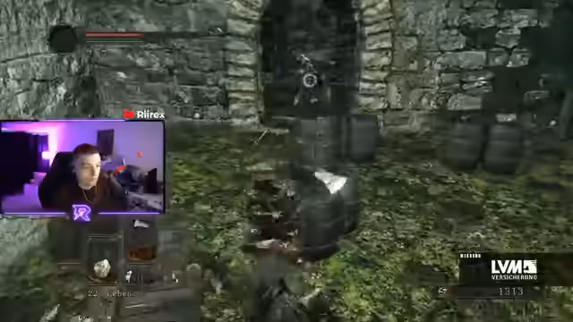 01:24:44Nachdem er den Anfangsbereich verlassen hat, gelangt der Streamer in die 'Verlorene Festung'. Sein Ziel ist es, den Schmied zu finden, um dessen Waffe für seinen Run zu erhalten. Um zum Schmied zu gelangen, muss er eine komplexe Sequenz ausführen: Er lässt ein Fass von einer Rampe rollen, um es in der Nähe des Schmieds zum Explodieren zu bringen. Obwohl er den Fasswurf mehrfach übt, klappt das Zünden nicht reibungslos, was ihn deutlich verärgert und seine mangelnde Erfahrung im Spiel offenbart.