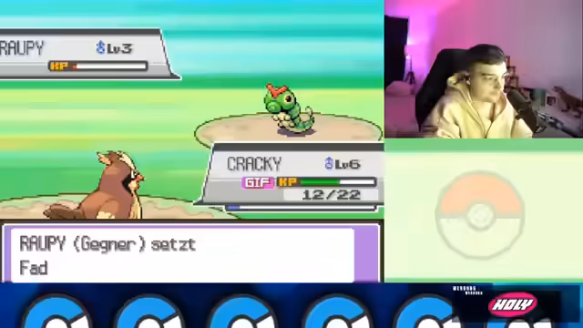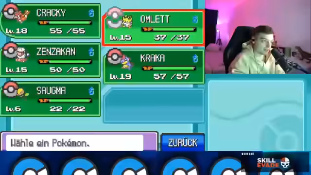 02:49:37Der Kampf gegen Arenaleiter Falk beginnt. Dieser drei Pokémon im Team hat, die alle vom Typ Käfer sind. Der Streamer ist nervös, aber sein überleveltes Team bewährt sich. Mit seinem Voltilam fängt er zwar einen vollständigen Knockout, aber Sanzakan, sein Geowatz, muss aufgrund eines Levelunterschieds kämpfen. Dank X-Treffern, die die Genauigkeit erhöhen, gewinnt auch Sanzakan seine Kämpfe, ohne dass ein Pokémon des Streamers stirbt. Er besiegt den Arenaleiter und erhält den ersten Orden.