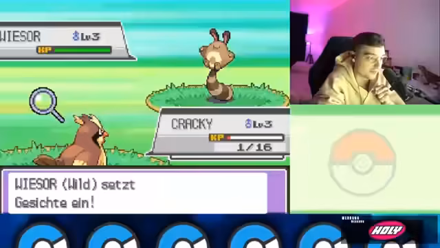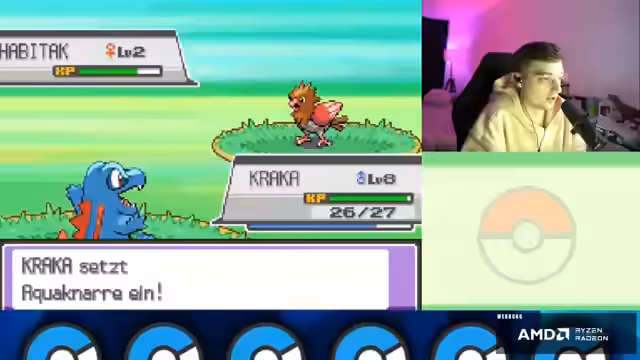 01:24:08Der Stream beginnt mit der Ankunft in Azaleia. Der Streamer beendet den Dialog mit dem Rivalen Endivier und beginnt, die Umgebung zu erkunden. Dabei fängt er ein Taubsi, das er sofort in sein Team aufnimmt und in Cracky umbenennt. Anschließend beginnt er, sein Pokémon durch Kämpfe mit Wildpokémon zu leveln, wobei er schnell feststellt, dass er sich überlevelt, da seine Pokémon deutlich stärker sind als die Gegner.