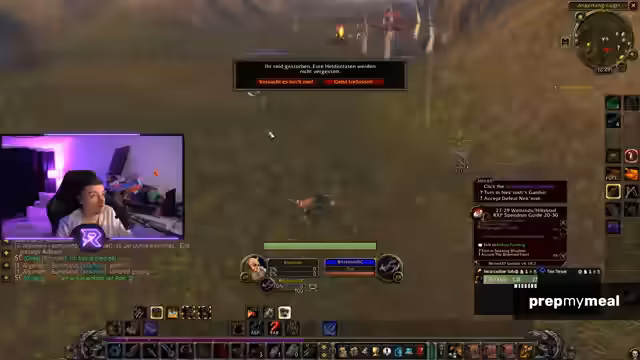 06:27:56Der Streamer stirbt mit seinem Level 29 Charakter im Spiel World of Warcraft Hardcore. Er analysiert den Tod retrospektiv und stellt fest, dass er sich in einer riskanten Gegend aufgehalten hat. Er bedauert, keine Totstellen-Skills oder Dummies vorbereitet zu haben, die ihn hätten retten können. Er gibt an, dass er unkonstruiert gestorben ist und den Tod dem Zeitdruck zuschreibt. Der Tod ist umso frustrierender, da er einen bereits sehr fortgeschrittenen Charakter verloren hat und nun überlegt, ob es sich lohnt, innerhalb der verbleibenden 11 Tage einen neuen zu starten.
