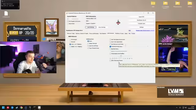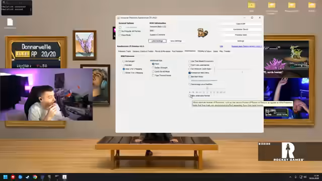 01:11:49Nach langem Rätseln, warum in den Begegnungen keine seltenen Pokémon wie Kirium oder Rotom-Formen auftauchen, wird das Problem in den Spielsettings entdeckt. Der Streamer stellt fest, dass zwar Allow Alternate Forms für Gegner aktiv ist, aber nicht für das Fangen der eigenen Pokémon. Dies erklärt, warum die Gegner stärkere Formen haben, während das Team auf Basisformen beschränkt ist.