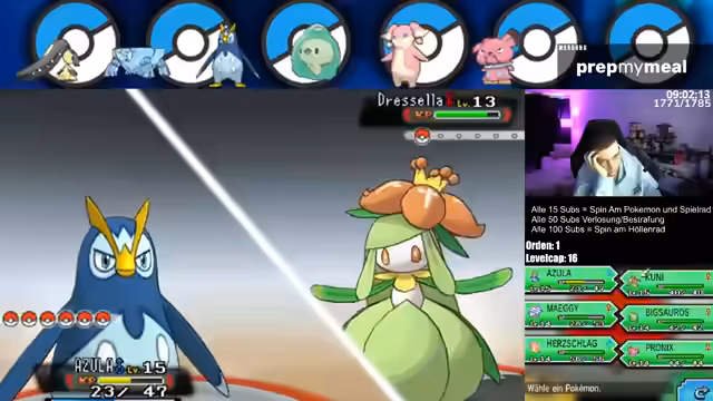 02:06:51Der Fokus liegt auf einem Kampf im Pokémon-Spiel. Der Streamer steuert ein Pokémon namens Herrscher gegen einen Gegner, der ein Lumpy einsetzt. Nach einer kuraten Analyse der Attacken und Fähigkeiten des Gegners, wird eine Strategie entwickelt. Diese umfasst den Einsatz der Attacke Herrschgesang, um den Gegner in den Schlaf zu versetzen. Anschließend wird eine Links-Rechts-Taktik mit der Attacke Herrschlag angewendet, um den Gegner erfolgreich und ohne Verluste zu besiegen.