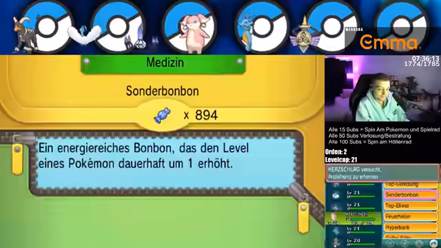 04:03:07Der Streamer zeigt sich stark desillusioniert von seinem aktuellen Team, das als „Scheiß-Team“ und nicht als Carry-Mon bezeichnet wird. Er verliert mehrere Pokémon und blickt auf die damit verbundenen finanziellen Verluste, da er für jeden Tod einen Geldbetrag zahlen muss. Er betont den unschätzbaren Wert des überlebten Herzslags und beginnt mit dem Aufbau eines neuen, besseren Teams, indem er schwere Pokémon für den weiteren Verlauf sucht.