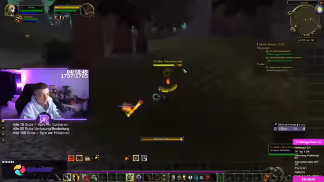 09:20:14Der Streamer spielt das MMORPG World of Warcraft, speziell den Hardcore-Modus, in dem bei einem Tod der Charakter endgültig entfernt wird. Es gibt viel Frust über game-interne Abkürzungen wie den Aufzug, der viele Spieler getötet hat, und die unübersichtliche Inventarverwaltung. Das Sammeln von Quests und das anschließende Stapel-Abgeben wird als sehr befriedigend empfunden. Die hohe Stresstoleranz für den Hardcore-Modus wird betont.