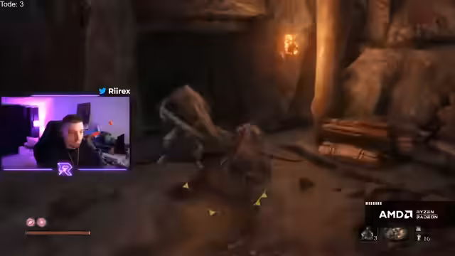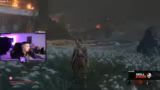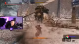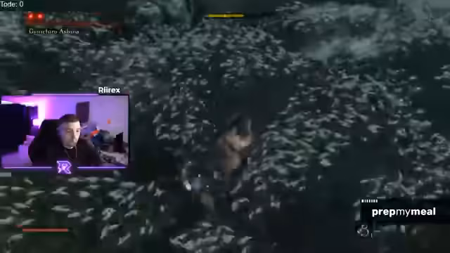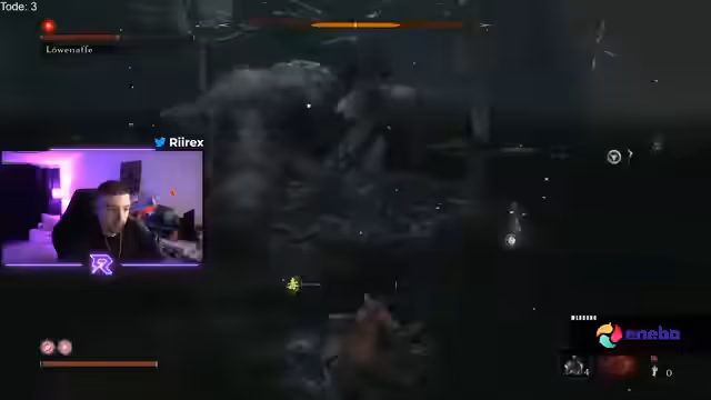 00:29:32Während des Laufs durch das frühe Spiel trifft der Streamer auf mehrere gefährliche Gegner und Bosse. Er kämpft gegen den Ogre, dem er aufgrund dessen schwer ausweichbarer Greif-Attacke zum ersten Mal unterliegt. Auch gegen Genichiro erleidet er zwei Tode, vor allem durch eine unerwartete Bogen-Attacke in der zweiten Phase, die er nicht parrieren konnte. Diese Rückschläge frustrieren den Streamer, da er sich hatte verbessern wollen. Der Run ist damit nach etwa einer Stunde auf drei Tode gekommen.