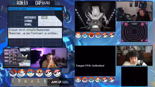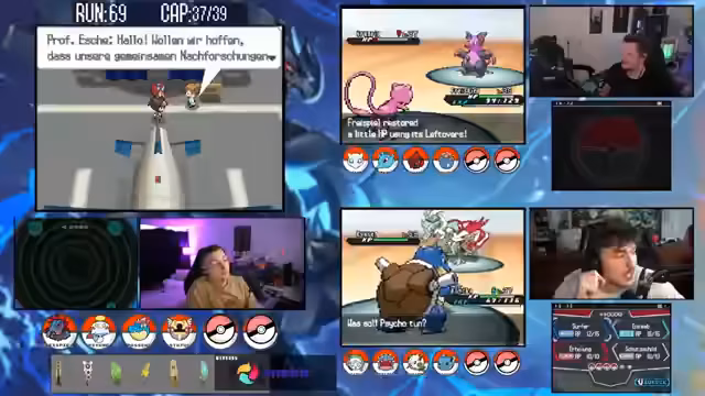 03:16:05Die Streamer definieren ihre Rollen im Team, wobei Matze als Encounter-Planer fungiert. Sie diskutieren über den aktuellen Stand des Runs und die Notwendigkeit bestimmter Items wie den Mondstein. Die Begegnungen mit Rivalen und anderen Pokémon-Trainern werden als Herausforderung gesehen. Die Streamer planen zukünftige Moves und das Level-Up ihrer Pokémon für die Top 4.